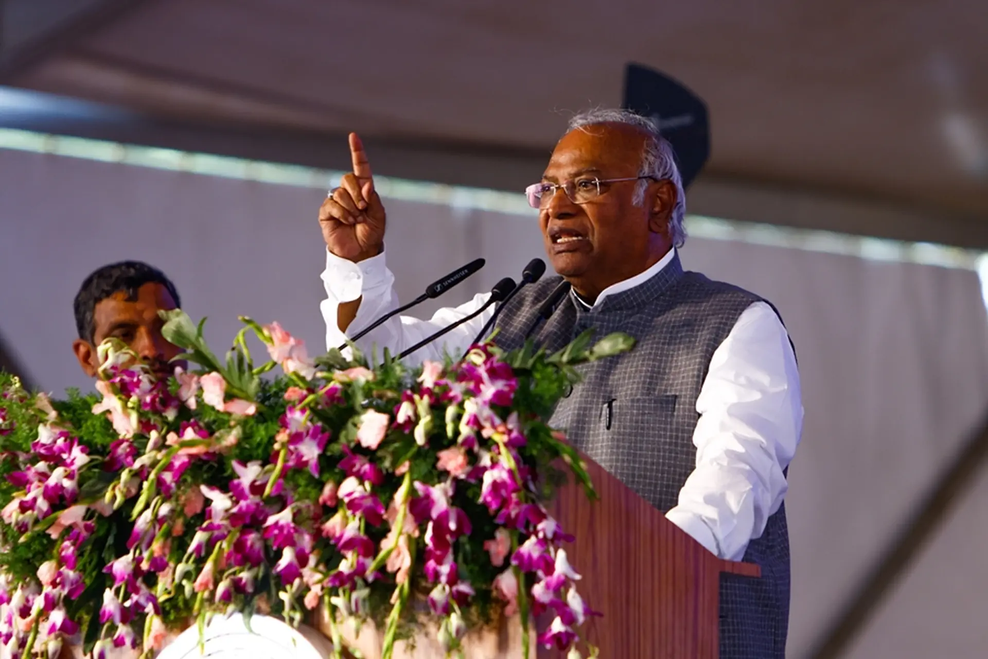 ”All of you keep giving your blessings to the Congress party and strengthen our hands in this fight to save democracy and the Constitution,” Kharge said.
