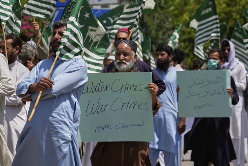 Dozens of demonstrators in Islamabad and other cities in Pakistan rallied against India’s suspension of a water sharing treaty, demanding their government retaliate.