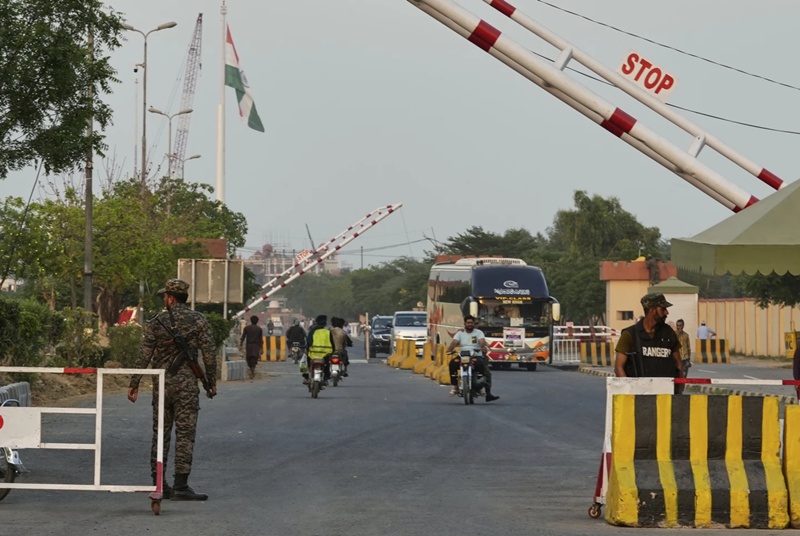 Pakistan’s paramilitary soldiers stand guard at a checkpoint near Wahag, a joint border crossing point between the Pakistan and India border, Thursday, April 24, 2025. (Photo: AP)