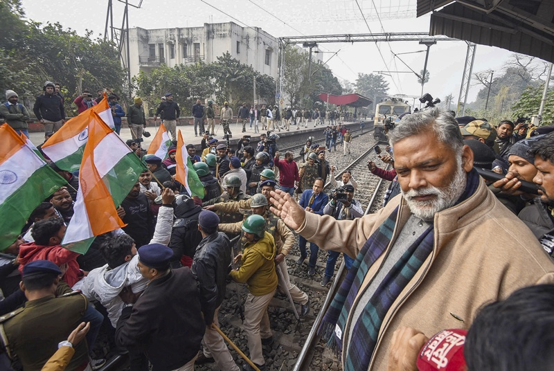 BPSC exam row: MP Pappu Yadav’s supporters stage rail blockade in Patna