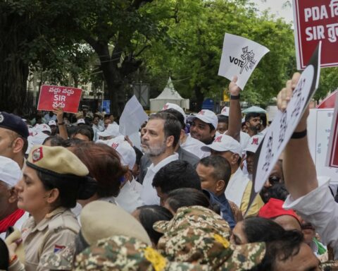 NEW DELHI, August 11, 2025 (AP) — India ’s opposition parties held a protest Monday calling for the rollback of a controversial revision of the voter list in one of the country’s poorest states, where key elections are scheduled in November, and