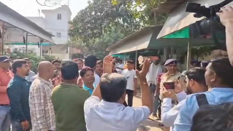 People gather outside Chaitanya Baghel' residence during the ED raid. (Photo: PTI)