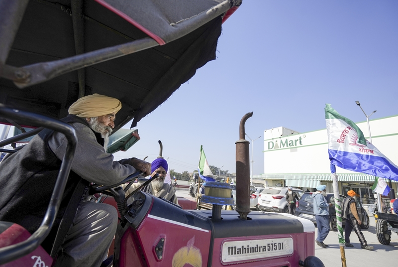 Hundreds of farmers, including senior SKM leaders, took part in the tractor marches to highlight the farmers’ demands.