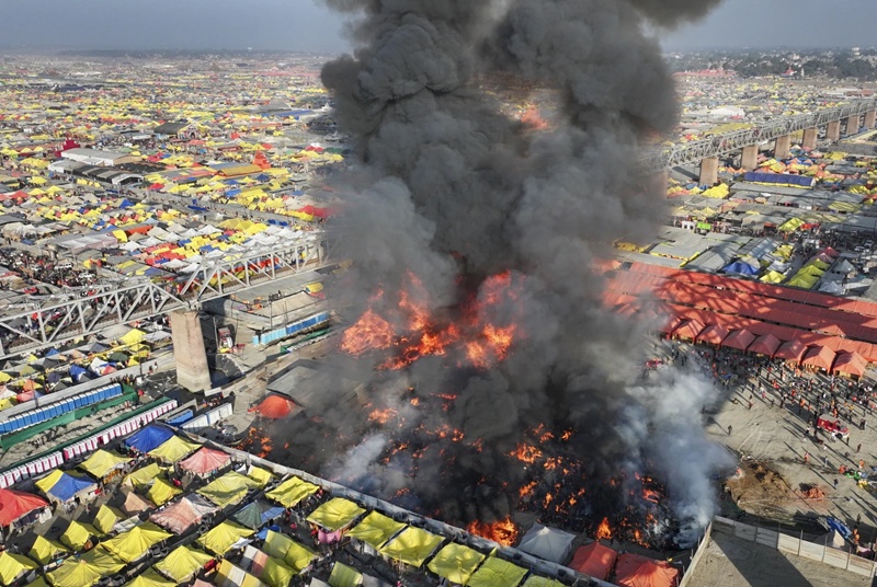 NEW DELHI, January 19, 2025 (AP) — A fire tore through at least 18 temporary tents at a massive Hindu festival thronged by millions of people in India’s northern Prayagraj city, officials said Sunday. There were no injuries.