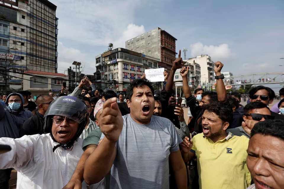 Kathmandu, Sep 9 (PTI) Fresh anti-government protests, led by students, broke out in several parts of Nepal on Tuesday, defying curbs on public gatherings, as demonstrators demanded resignation of Prime Minister K P Sharma Oli.