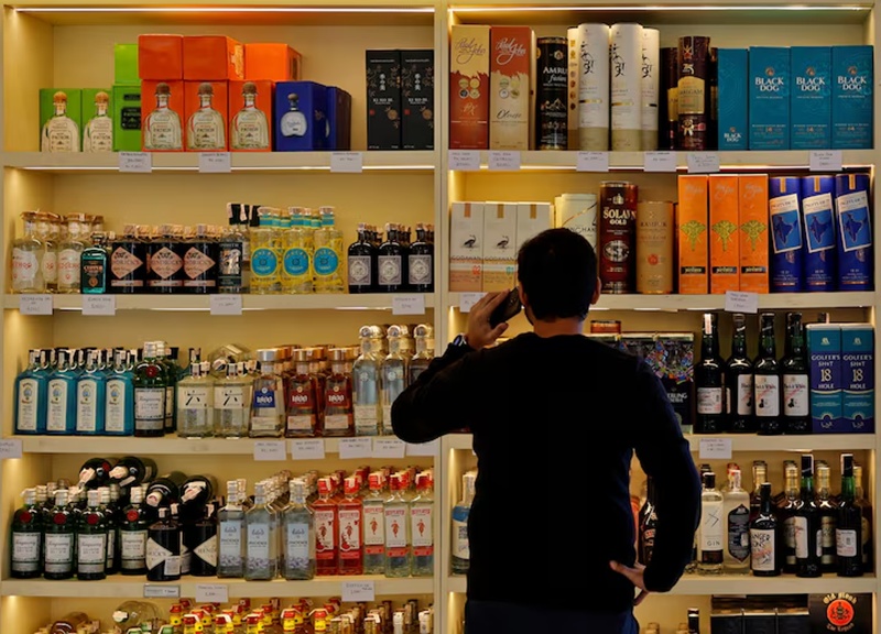 A customer looks at liquor bottles for purchase at a liquor store in Gurugram, India December 11, 2023. REUTERS/Sahiba Chawdhary/File Photo