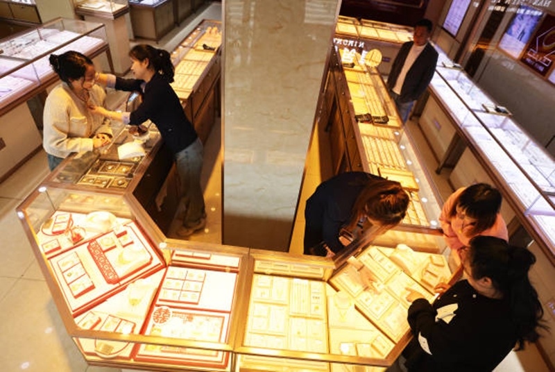 Customers select gold ornaments at a gold jewelry store on April 3, 2024 in Huzhou, Zhejiang Province of China. (Photo: Getty Image)