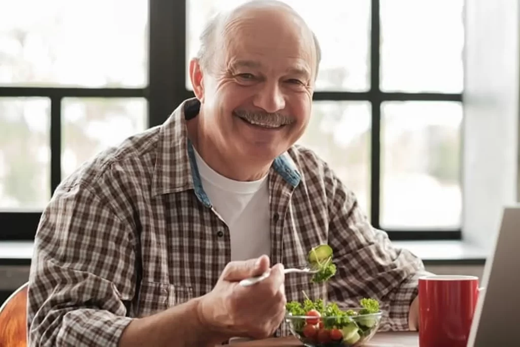 A senior man eating balanced diet.