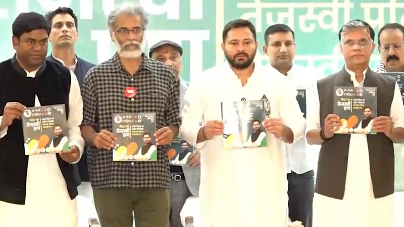 The 32-page-long ‘Bihar ka Tejashwi Pran’ (Tejashwi’s resolve) was released at a crowded press conference where the 35-year-old RJD leader was joined by alliance partners.