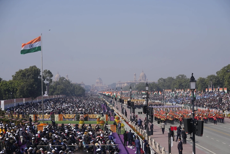 Tens of thousands of people lined the road on a cold Sunday morning to watch the long parade to mark the anniversary of the official adoption of India’s Constitution on Jan. 26, 1950, nearly three years after independence from British colonial rule.