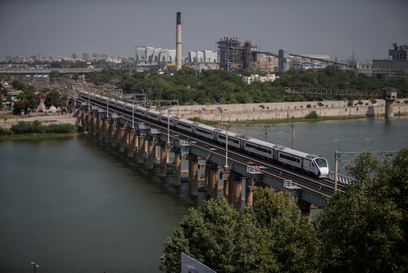 India's high-speed train 'Vande Bharat Express' passes a railway bridge after being inaugurated by Prime Minister Narendra Modi, in Ahmedabad, India, September 30, 2022. REUTERS/Amit Dave/File Photo