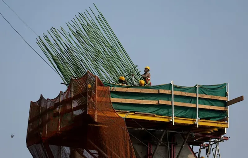 Construction workers build a metro pillar in Mumbai, India, January 23, 2026. (Photo: Reuters)