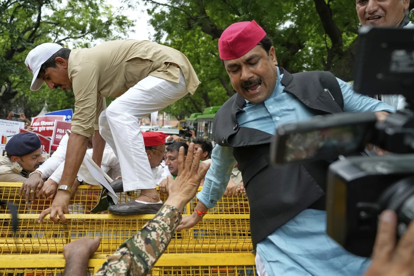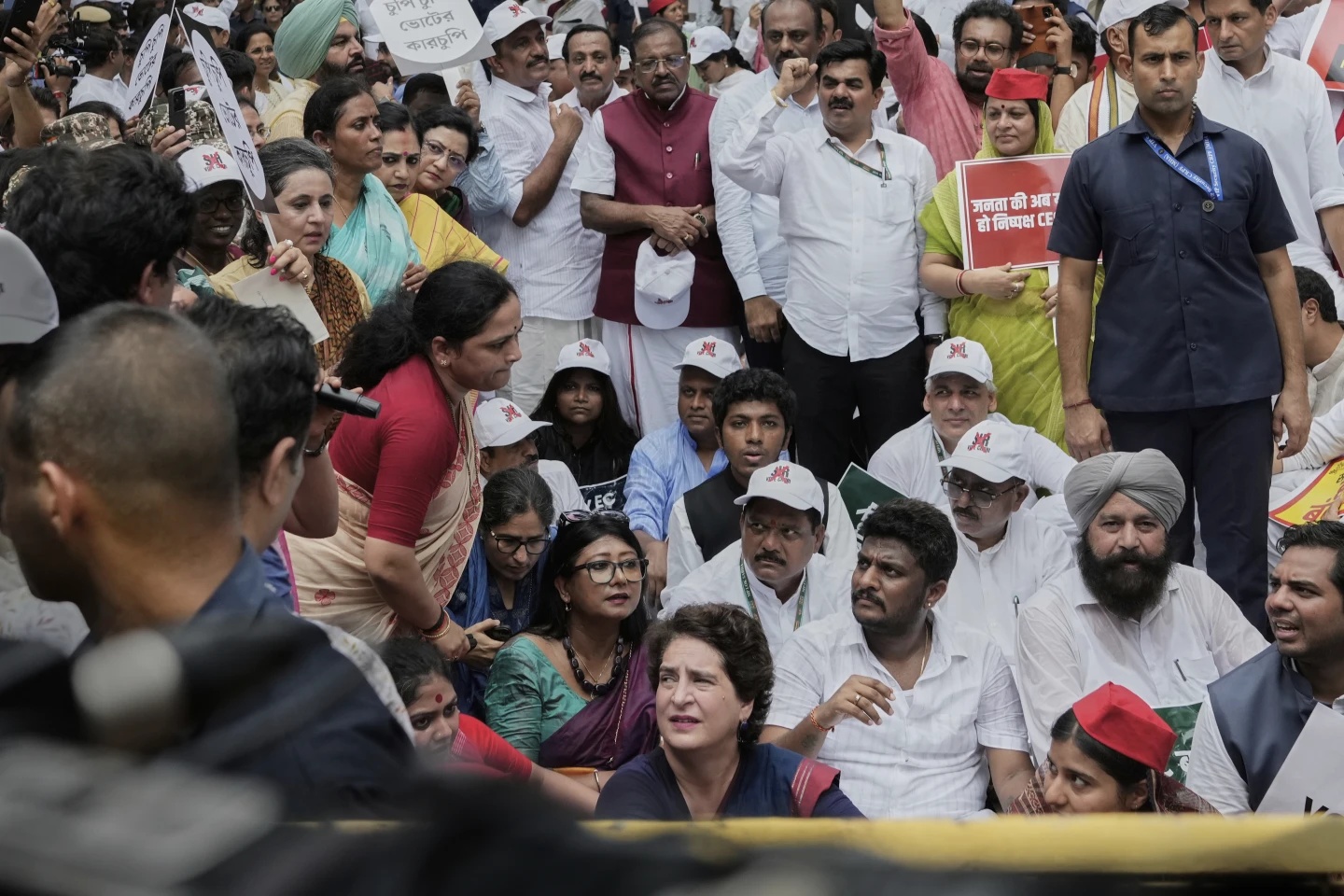 Hundreds of lawmakers and supporters began the protest from parliament and were confronted by police, who stopped them from marching towards the election commission office in the capital, New Delhi. Police briefly detained some lawmakers, including opposition leader Rahul Gandhi.