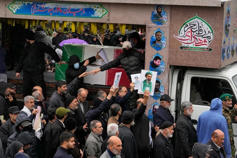Iranians follow the funeral procession of Iran’s intelligence minister Esmail Khatib and, according to Iranian officials, his wife and daughter, in Tehran, Iran, Friday, March 20, 2026. (Photo: AP)
