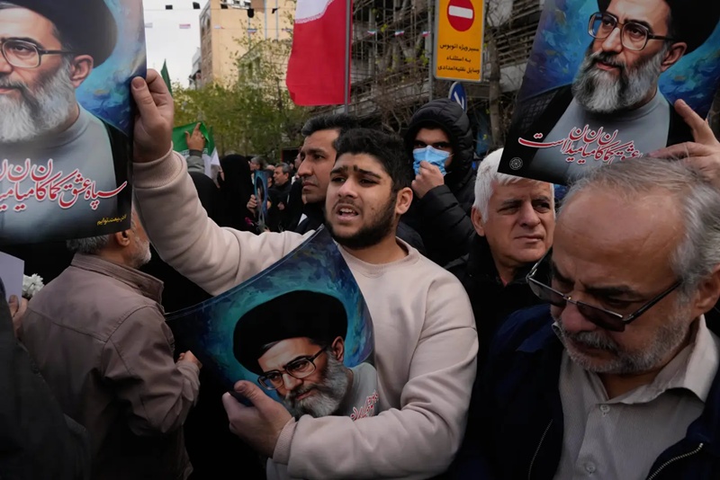 >A man hands out posters of the Iranian Supreme Leader Ayatollah Ali Khamenei during a funeral ceremony for a group of security forces, who were killed during anti-government protests, in Tehran, Iran, Wednesday, Jan. 14, 2026. (Photo: AP)