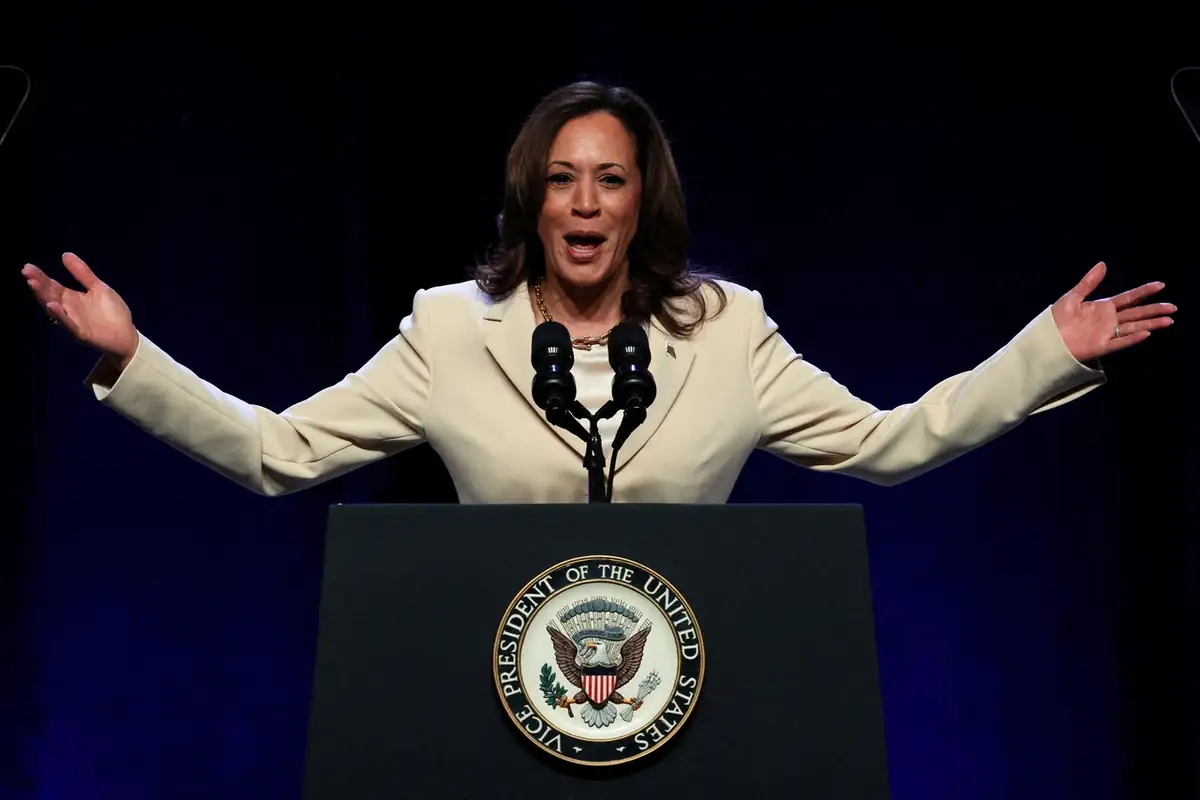U.S. Vice President Kamala Harris speaks during the Constitutional Convention of UNITE HERE, the nation’s largest hospitality workers' labor union, in New York City, U.S., June 21, 2024. REUTERS/Brendan McDermid/File Photo