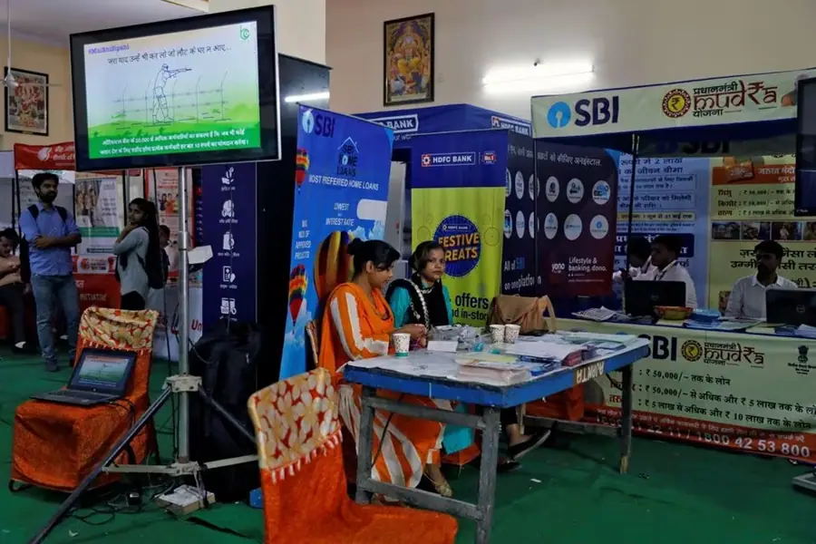 Employees of State Bank of India (SBI) wait for customers to offer loans at a "loan mela" or a loan fair, organized by various Indian banks in New Delhi, India, October 4, 2019. Picture taken October 4, 2019. REUTERS/Anushree Fadnavis/File Photo