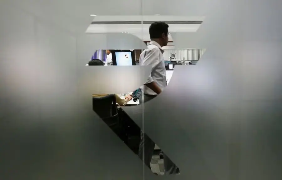 A currency trader is pictured through the symbol for the Indian Rupee on the floor of a trading firm in Mumbai. (Photo:(Reuters )