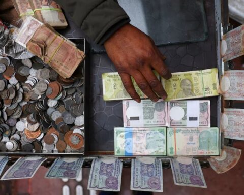 An employee sorts Indian currency notes at a cash counter inside a bank in the northeastern Indian city of Agartala, Indiia. (Photo: Reuters)