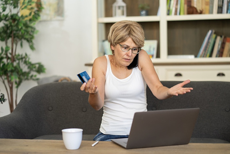 A woman appears frustrated while talking on the phone and using her old laptop at home, showcasing emotional distress and engagement with technology. (Photo: Getty Image)