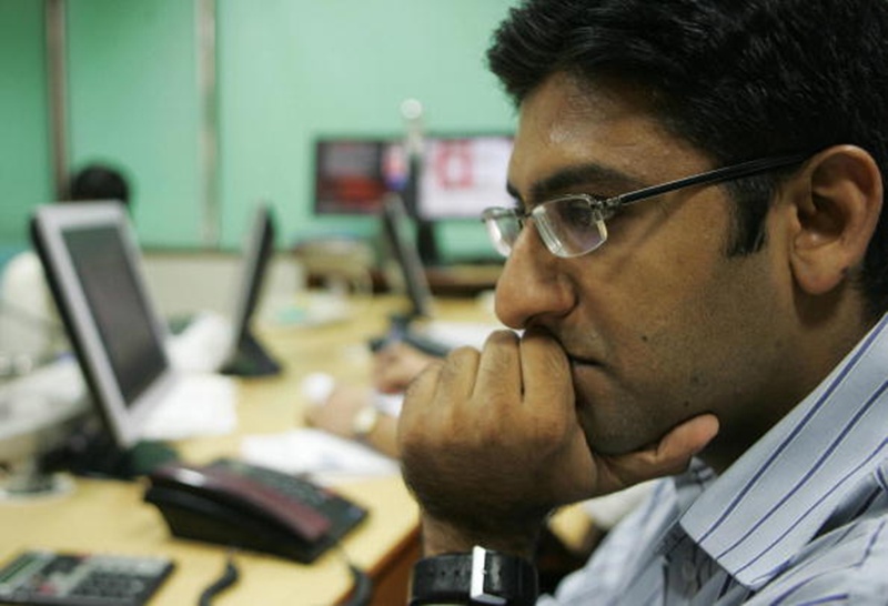 An Indian stock broker looks worried as he watches the screen in Mumbai. (Photo: Getty Image)