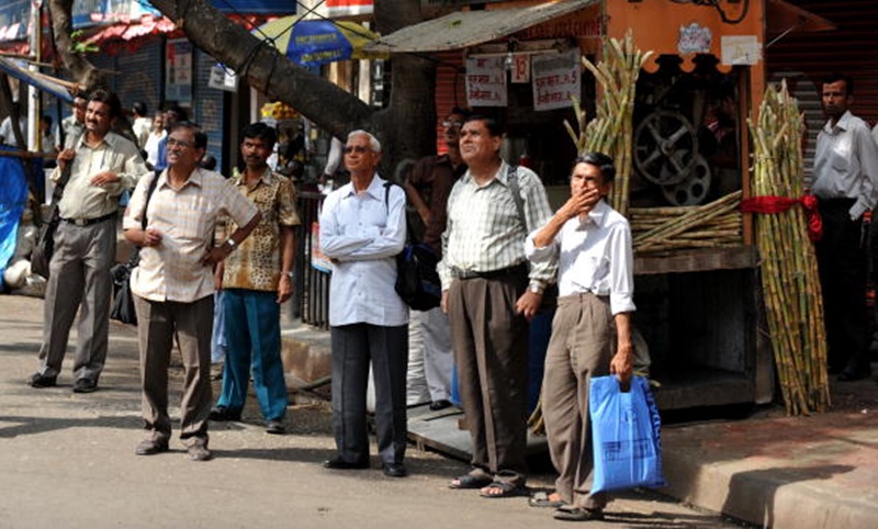 Indian bystanders watch share prices on a digital broadcast board outside The Bombay Stock Exchange (BSE) in Mumbai. (Photo: AFP)
