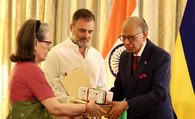 Congress leaders Sonia Gandhi, Rahul Gandhi meet with Mauritius PM Navinchandra Ramgoolam