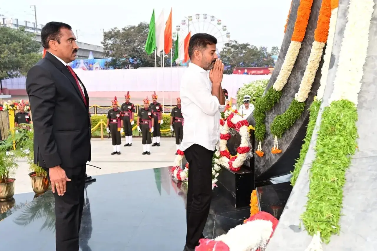 Chief Minister A Revanth Reddy also hoisted the National Flag at the state government’s official celebration of formation day organised at the Parade Grounds here.