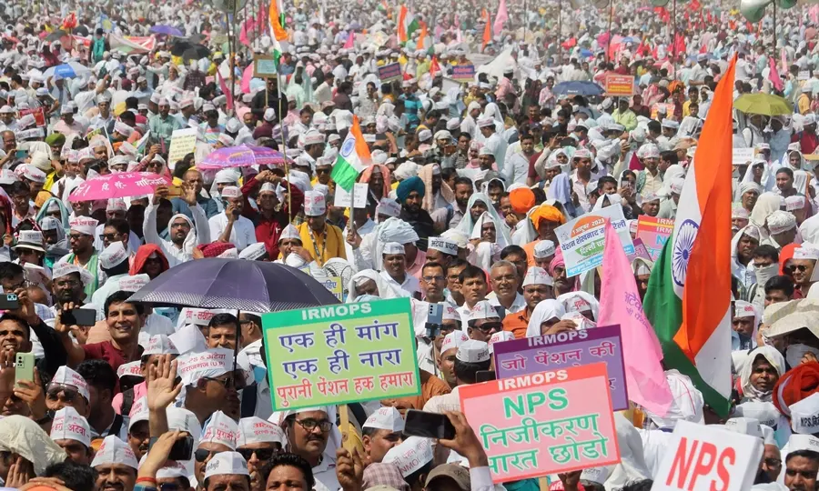 “We are holding a maha rally to demand the restoration of the Old Pension Scheme under the banner of the Joint Forum for Restoration of Old Pension Scheme (JFROPS) and National Joint Council of Action (NJCA),” a protester said.