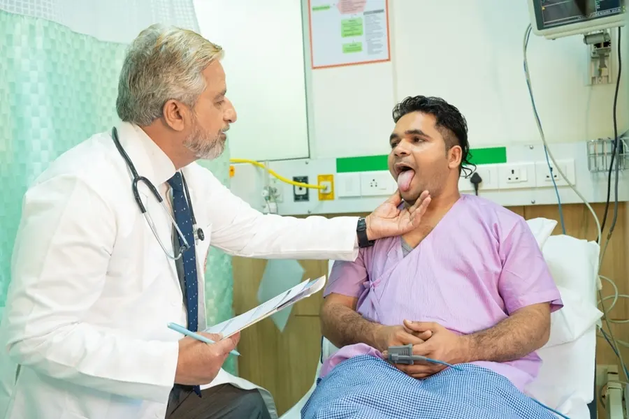 Doctor seeing paitent's tongue.