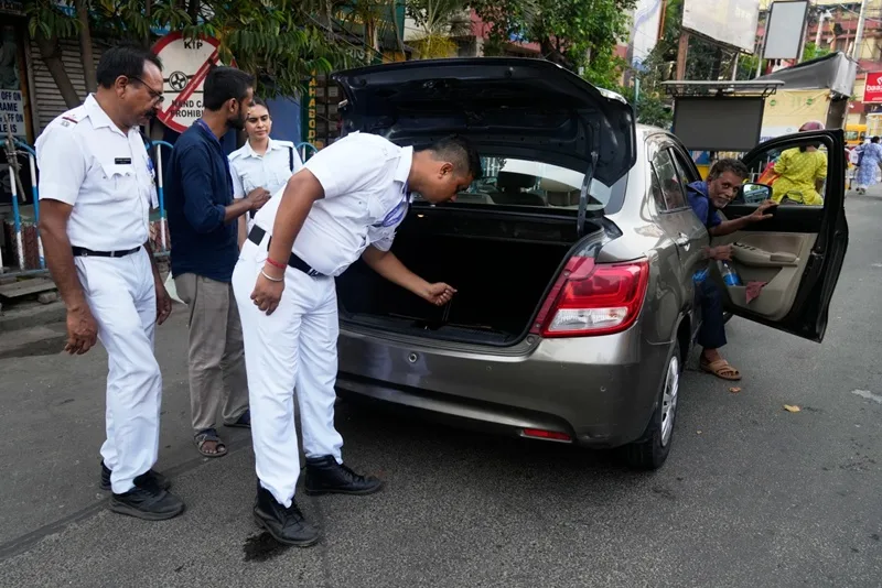 • Police personnels check a car as part of security measures ahead of the West Bengal state Legislative Assembly elections, in Kolkata, India, Wednesday, April 22, 2026. (Photo: AP)