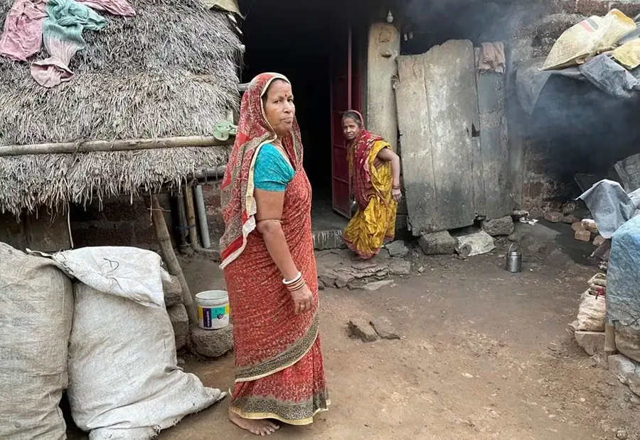 Tilottama Pradhan, a housewife, poses for a photograph outside her one-room house at Tarada village in Puri district of the eastern state of Odisha, India, December 15, 2023. REUTERS/Jatindra Dash